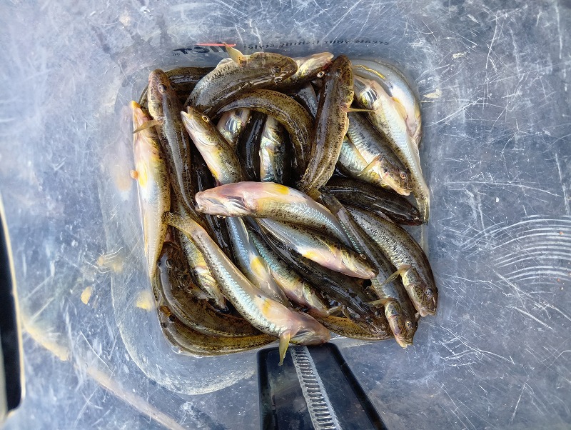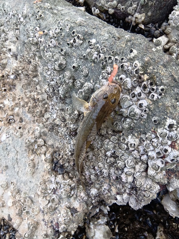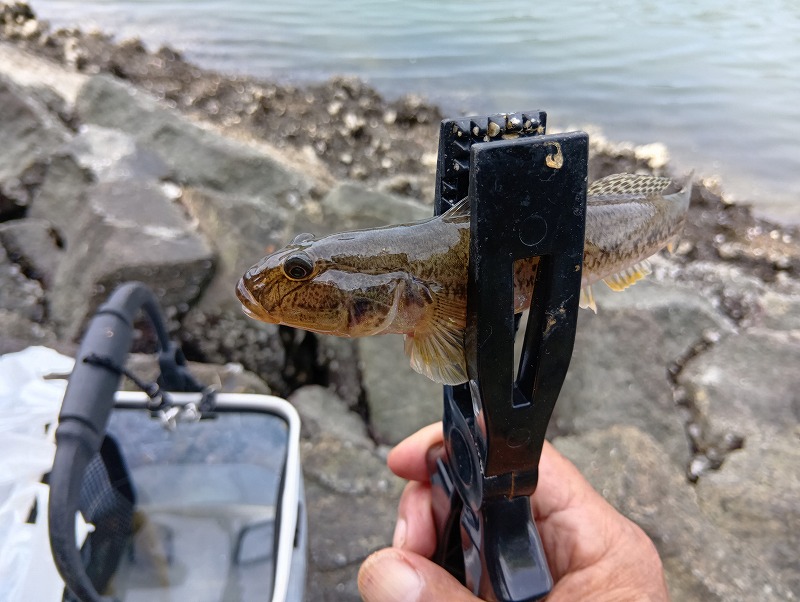 4頭目ぐらいにやっと食わせるとハゼとは思えない重量感と引きのパワー、せいごかなと思ったらなんとチビキビレでした。