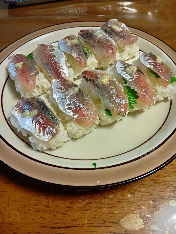 半年ぶりのアジの握り寿司、やっぱり美味いねぇ!