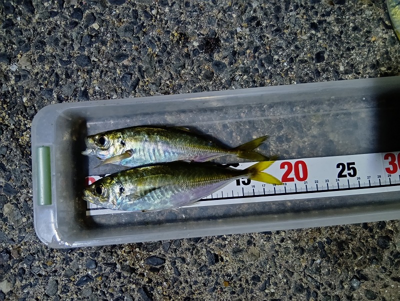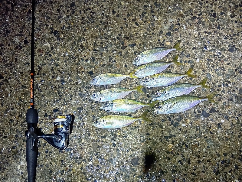 群れが小さいからか連発はないがレンジを変え投げる方向を変えポツポツ釣れたが20時半ぐらいに当たりが止まった。