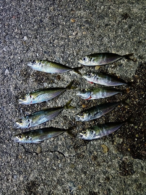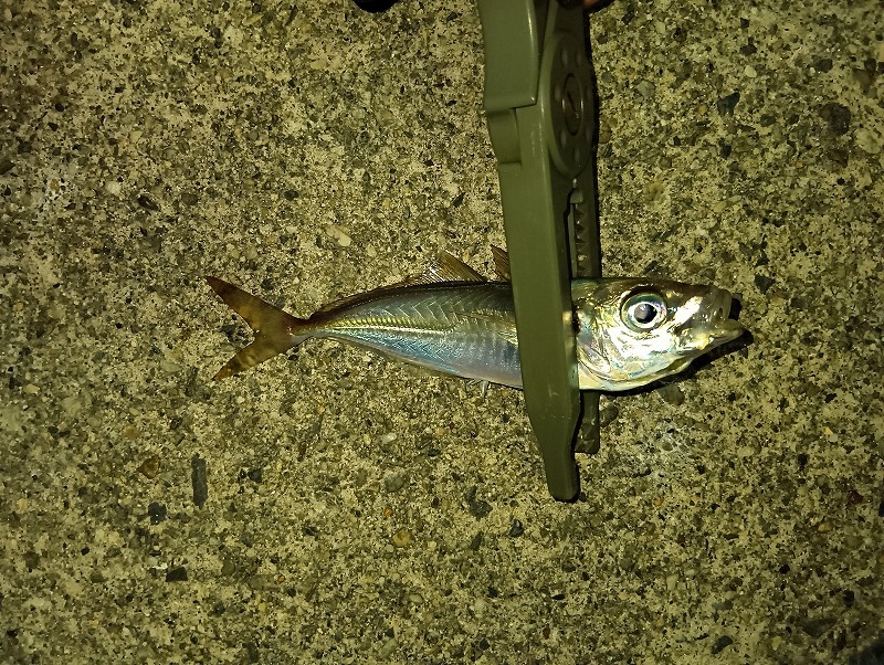 相変わらず食いが浅いので途中バレもあり釣り上げたアジも堤防の上でヒトはねすると針が外れる。