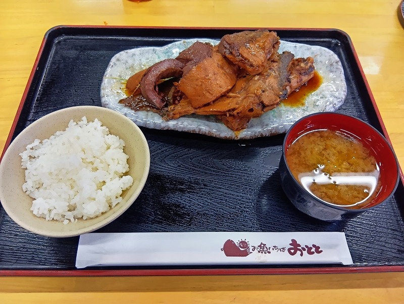 山盛りのブリのあら煮にあおさの味噌汁とごはんで580円、美味しくて安くて大満足!これで帰路につきます。