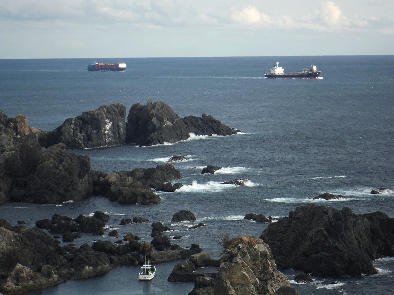 レーダーやGPSのなかったころの航路確認は目視重視だったのだろうか思ったより岬先端から近くを航行している船舶。