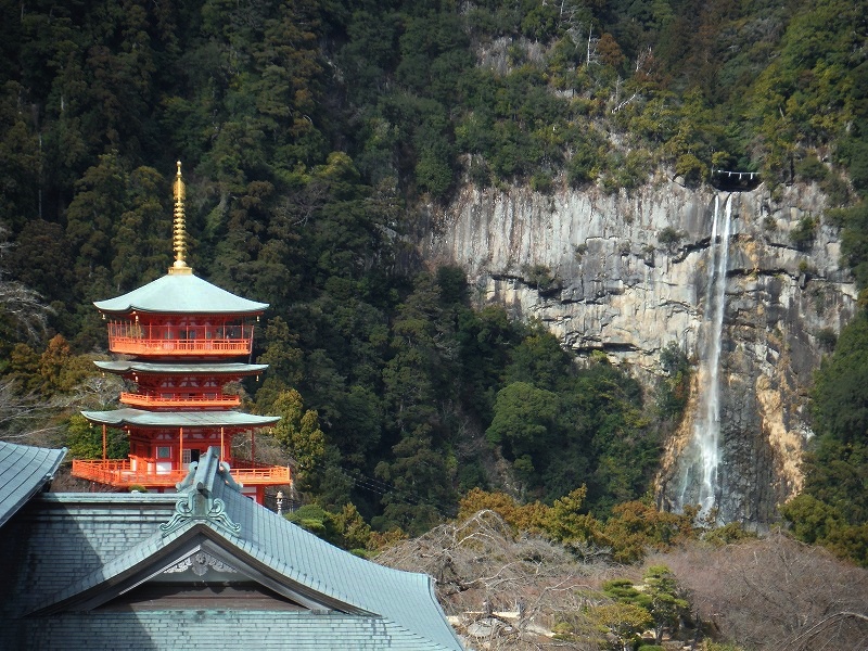 対面の山には那智の滝と手前に三重塔、渇水期でもいい感じで滝の水が落ちてました。
